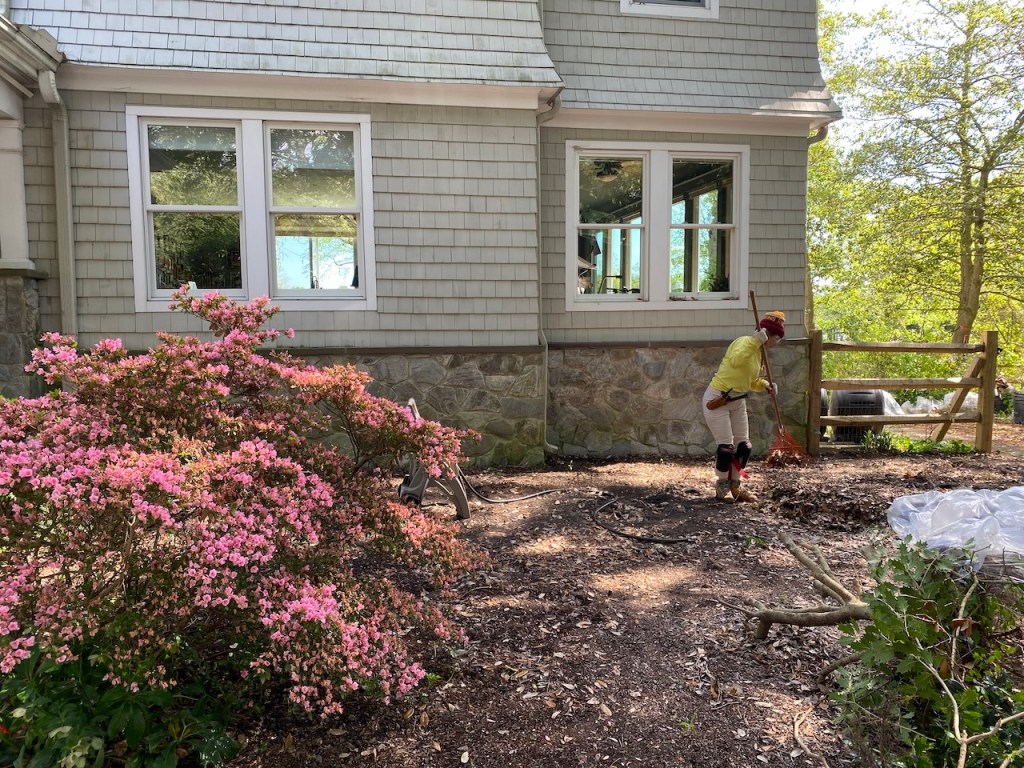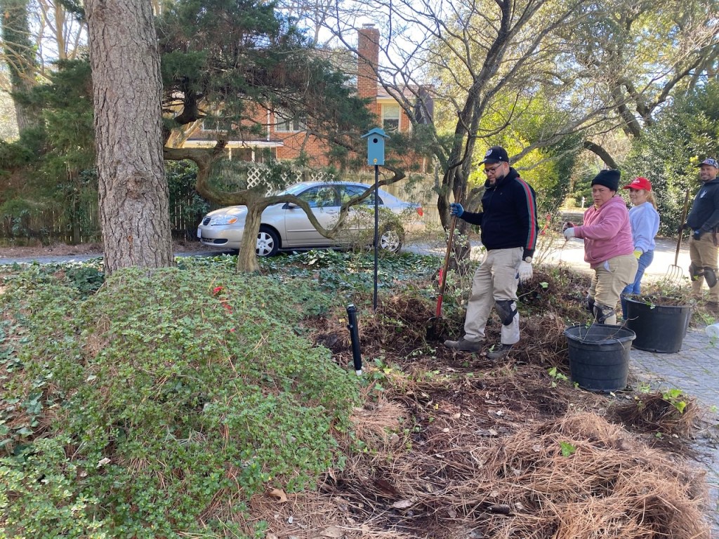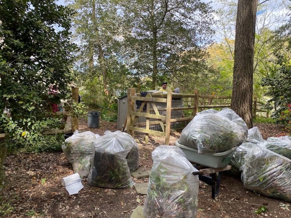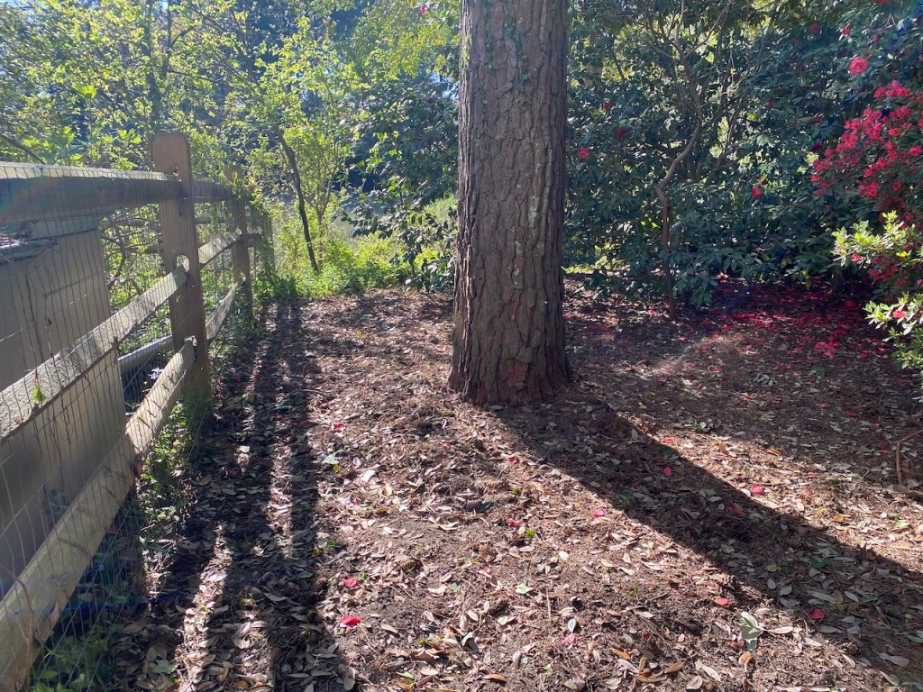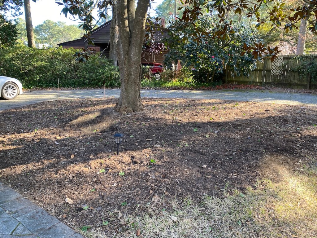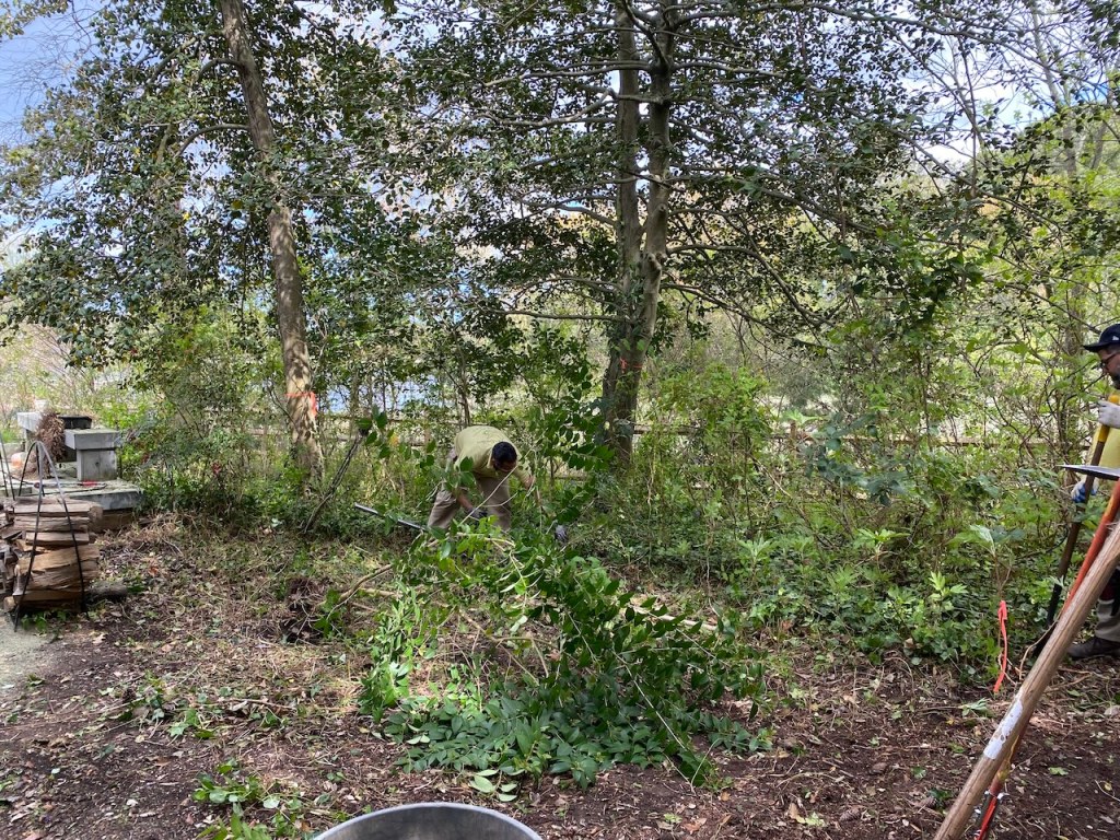 We left some of the non-native plants, like large azaleas, as they were healthy well-established plants that do offer some benefits to wildlife like shelter and nesting areas for birds.