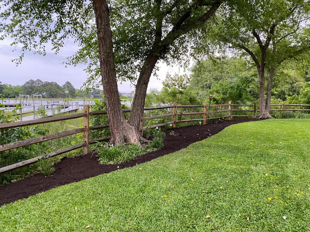 As part of adding plants to our beds, we took the opportunity to increase the bed area and reduce the size of our yard — this is the third reduction in lawn size we have made since buying the house. Even though we mow with an electric mower, and use no chemicals on the yard, it is still a large area of a monoculture that’s not doing much for the ecosystem, so we like having it smaller.