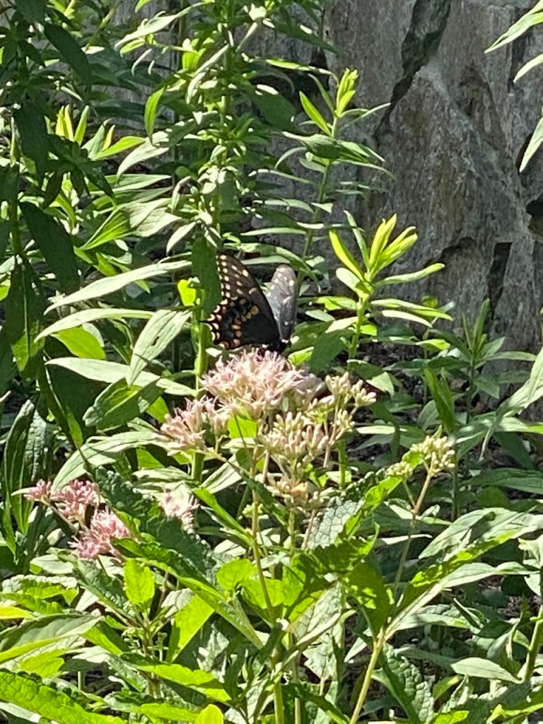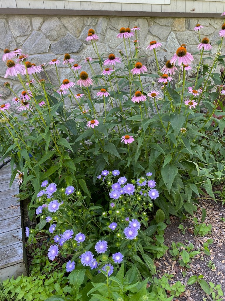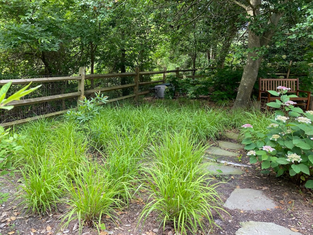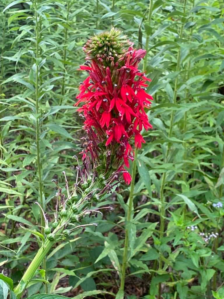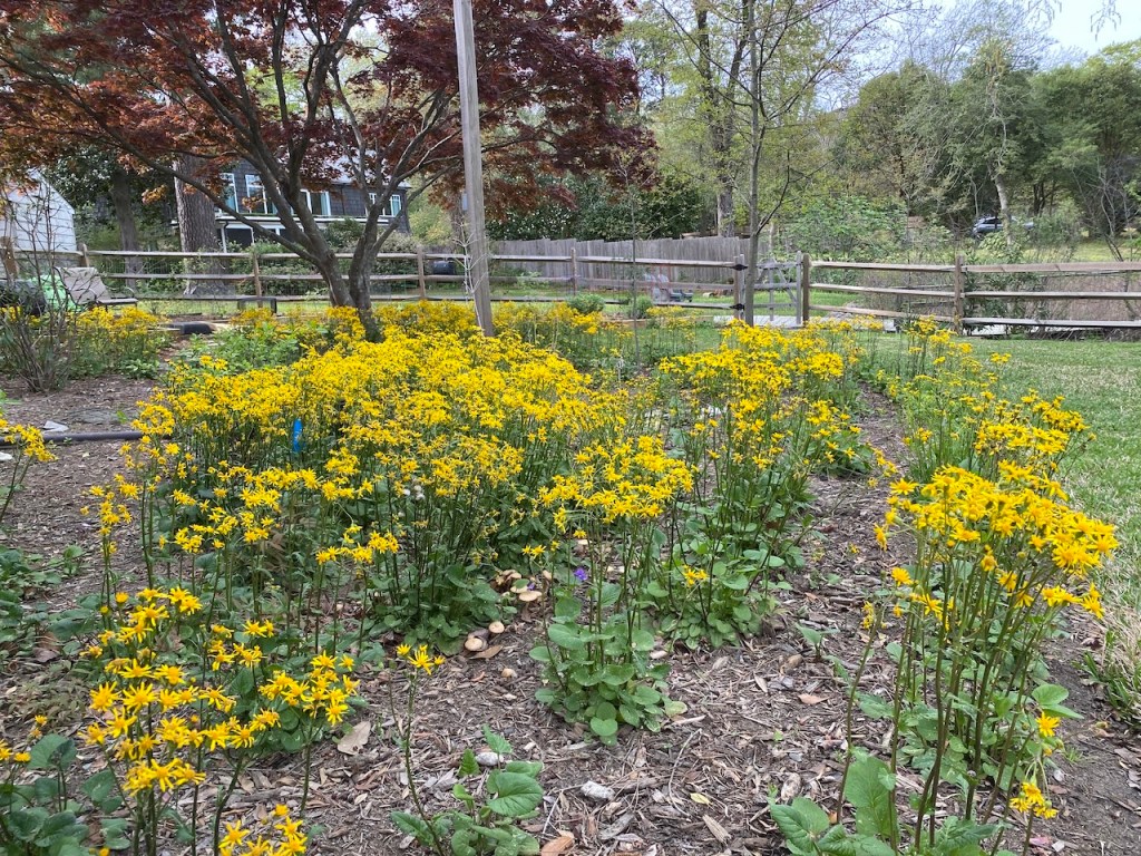 Here are some blooms of the plants now that some of them are a year old. The golden ragwort filled in amazingly, and I finally got to see blooms from the Virginia bluebells! (they had already bloomed when I planted them the first year). Click on any photo to see a bigger image.