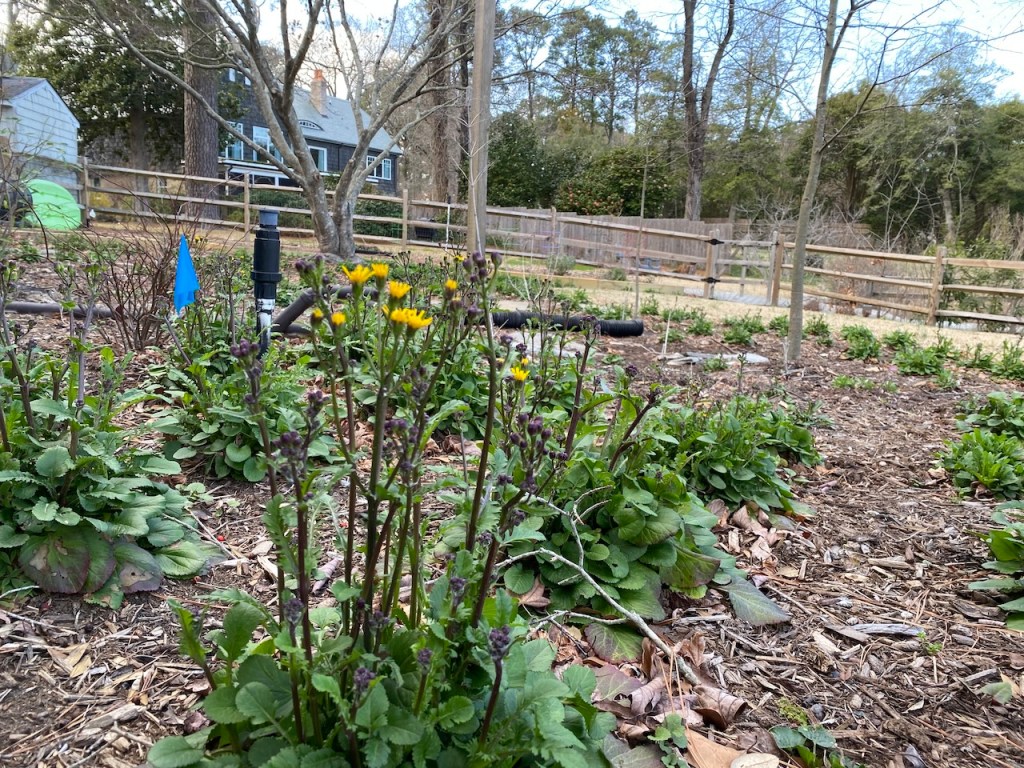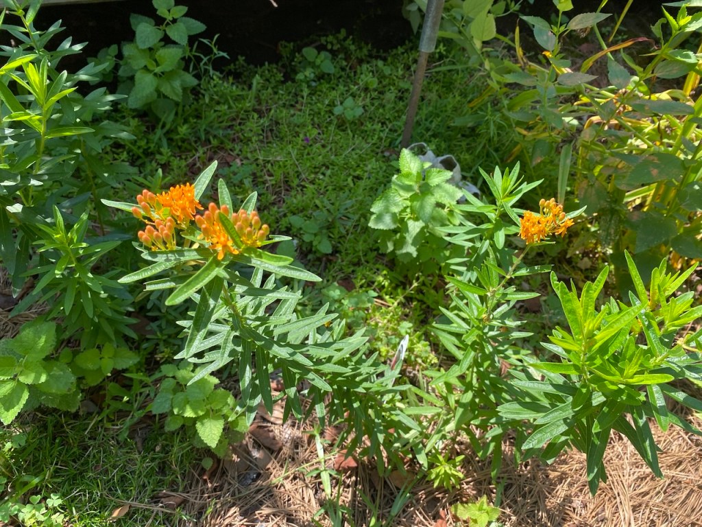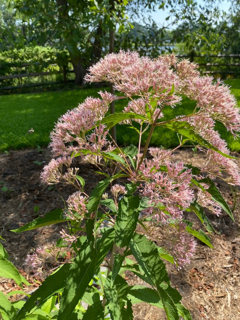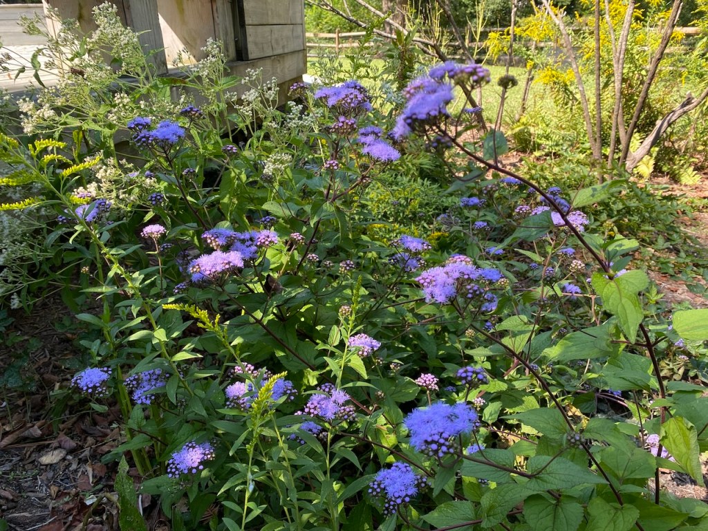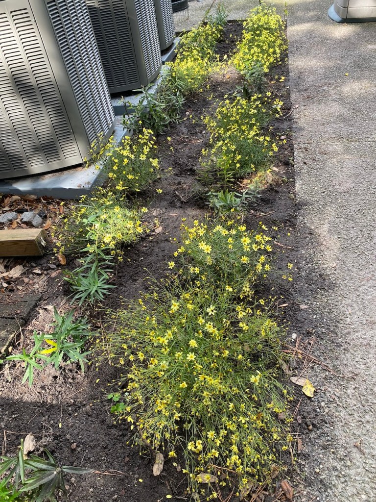 This is a few of the plants blooming in the summer. The goldenrod is gorgeous, especially mixed with the bearded beggartick (also tall yellow flowers) that I got from a neighbor. Click on any photo to see a bigger image.